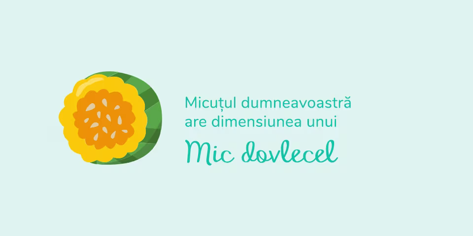Bebelușul tău este de dimensiunea unei tărtăcuțe (lungime: 30 – 35 cm; greutate: 680 grame).